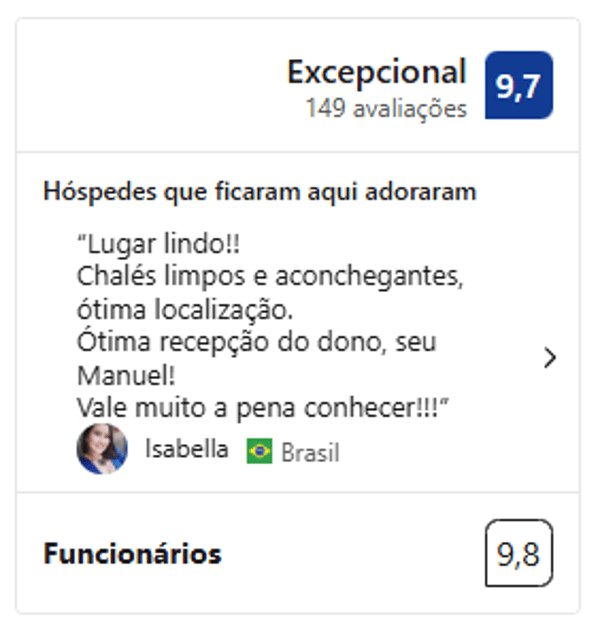 Casais particularmente gostam da localização — eles deram nota 9,7 para viagem a dois.